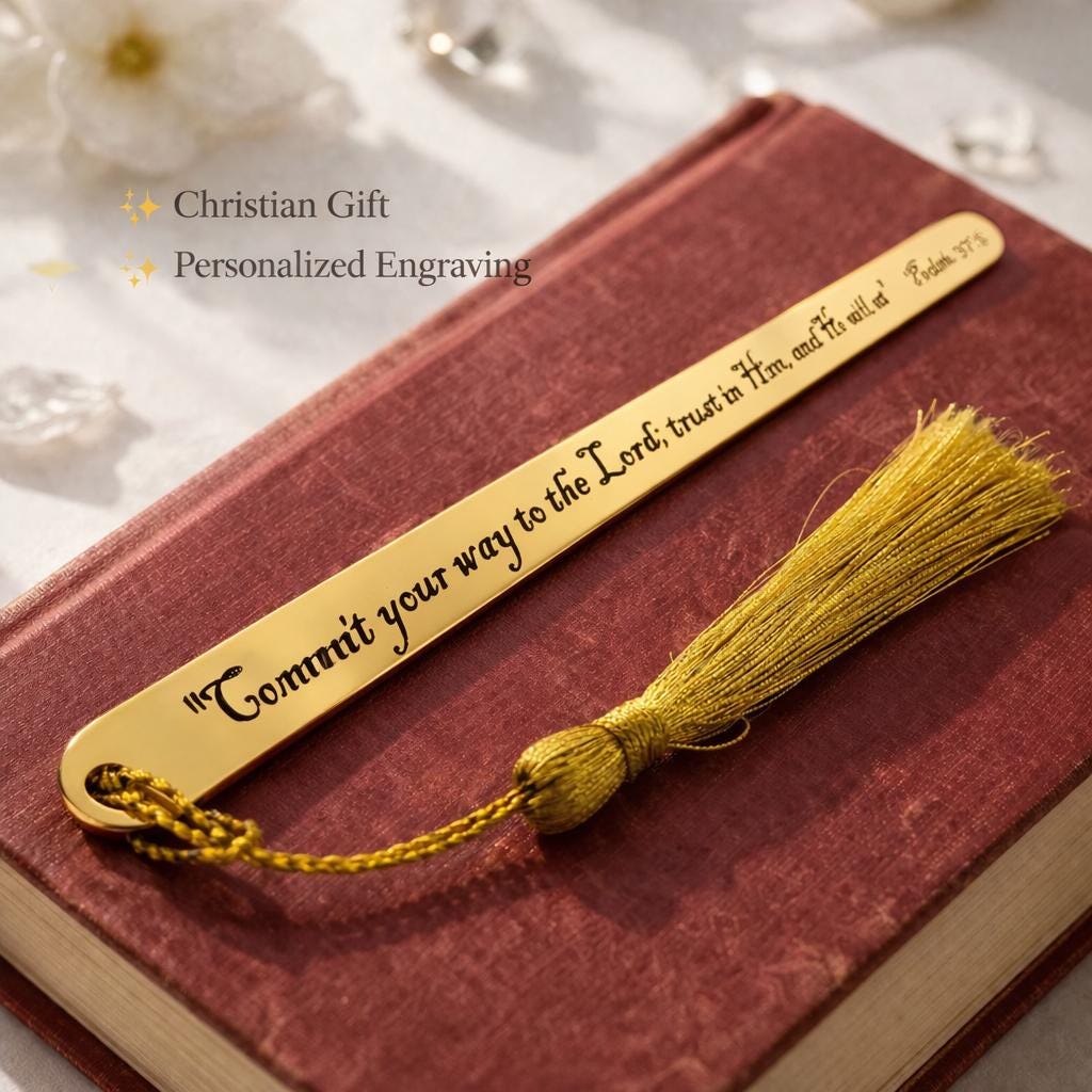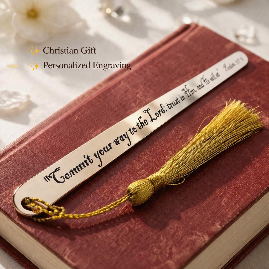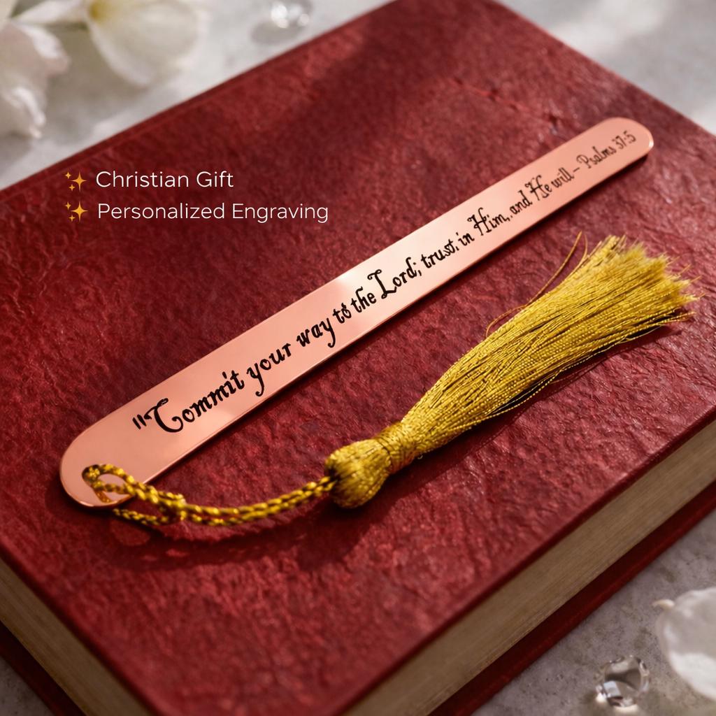 Engraved Psalm 37:5 Bookmark - Commit your way to the Lord - Christian Gift with Tassel