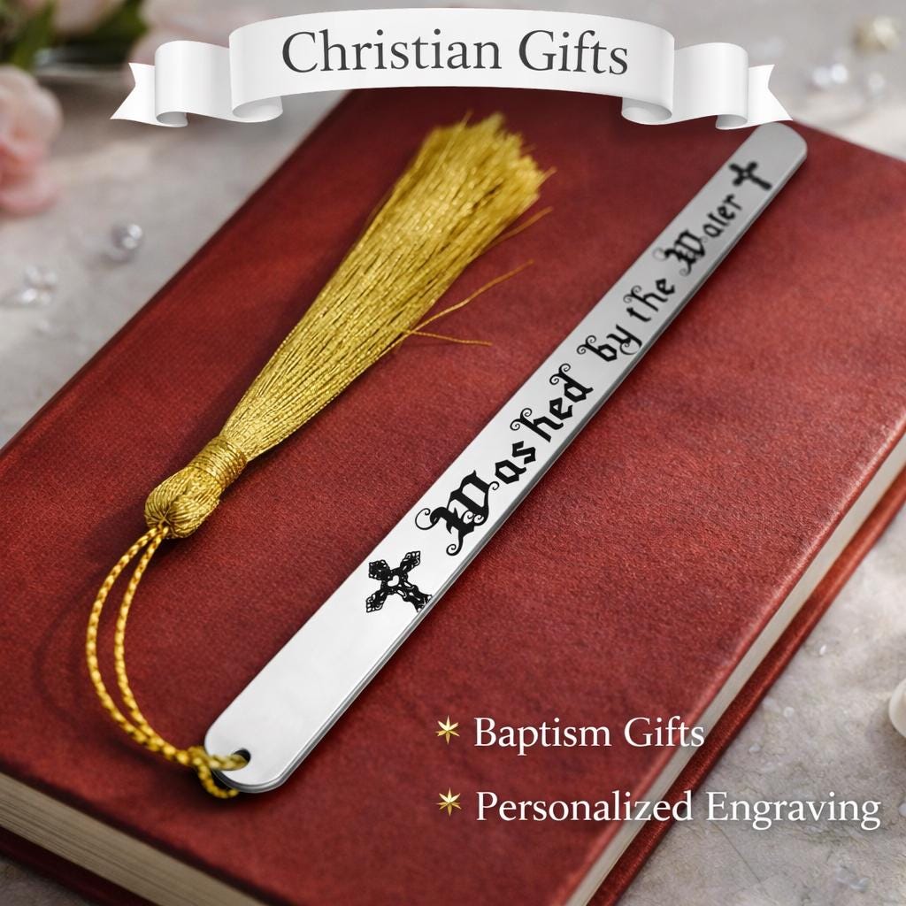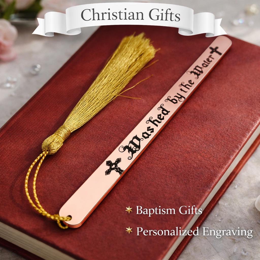 Washed By The Water Baptism, Easter, Christian Bookmarks. Book Marks Engraved for Kids Men Women Girls Boys with Tassel. Christian Bible gift for him, Boys, Her