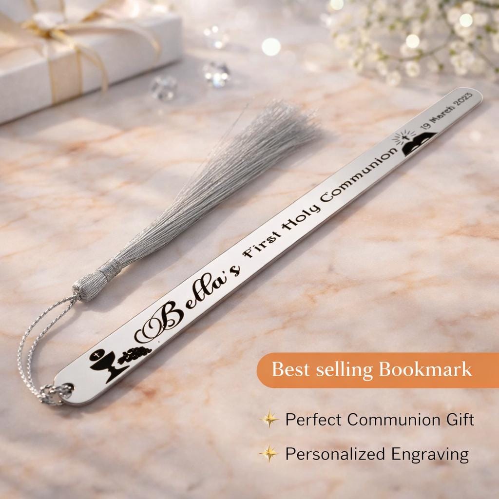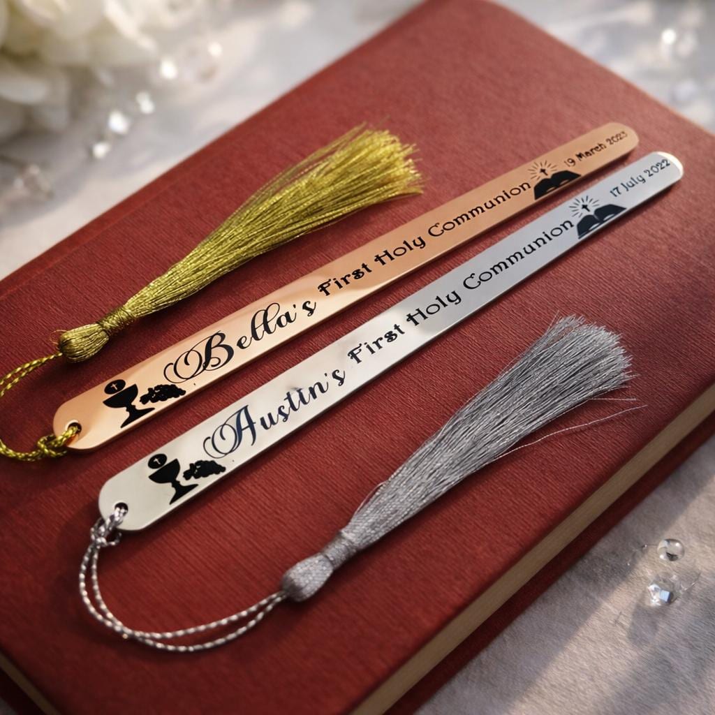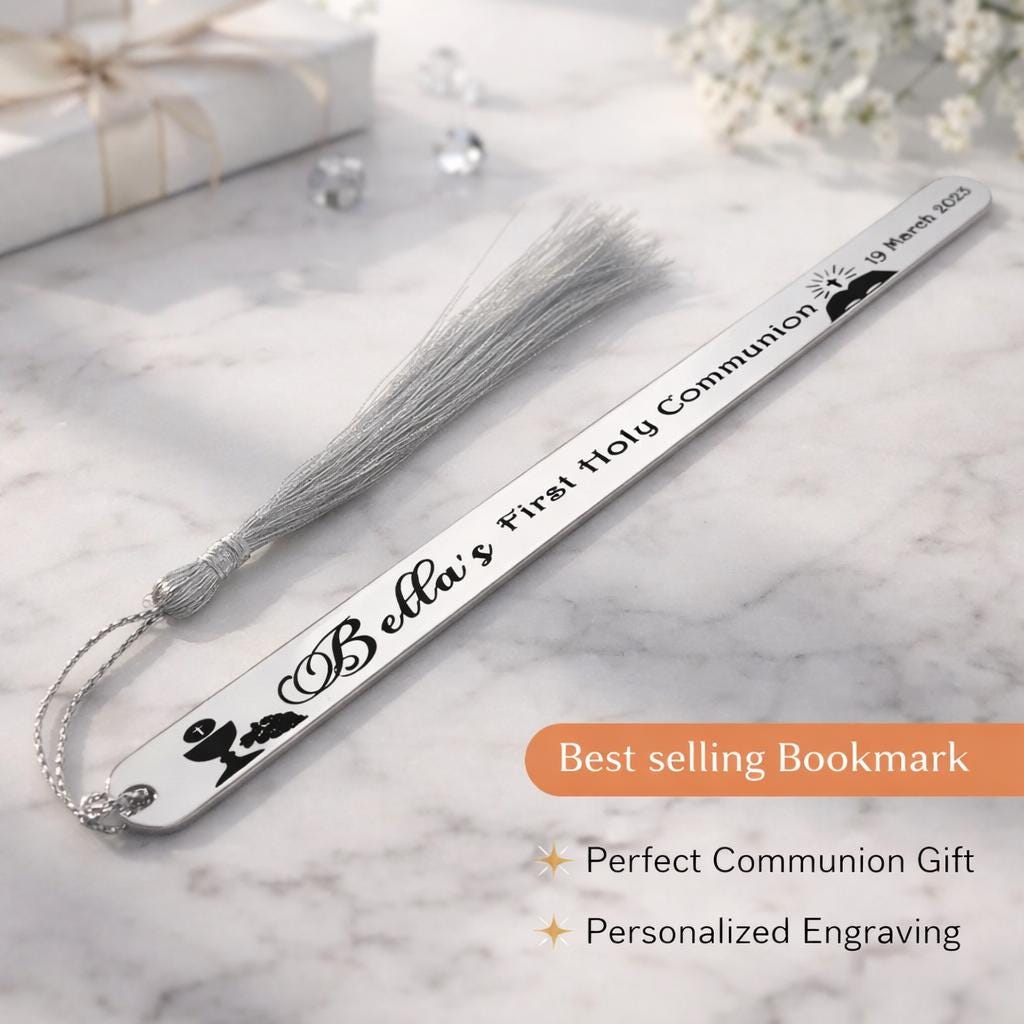 Personalized Communion Bookmark, Stainless Steel, Engraved Baptism Gift