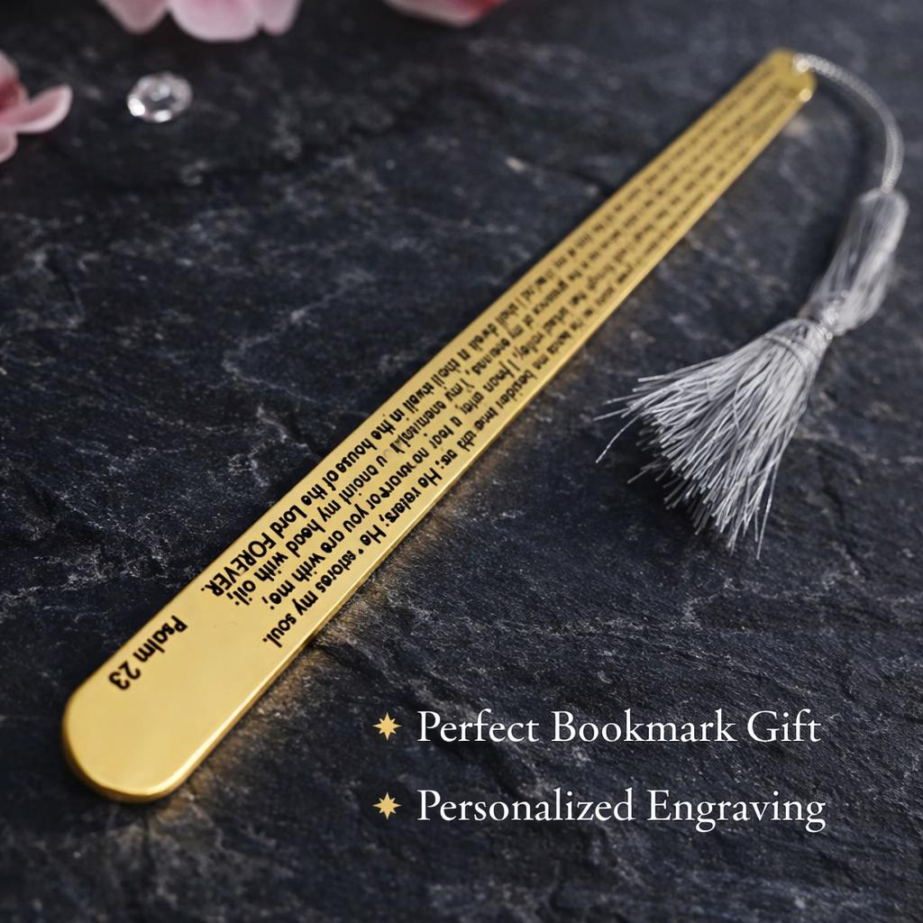 You can choose to have the bookmark customized in different font or have a different Bible Verse / Message / Text Engraving altogether.