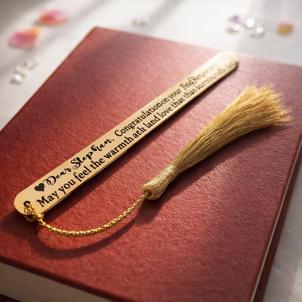 -This is a Premium Quality Stainless Steel Custom engraved Bookmark with Tassel.