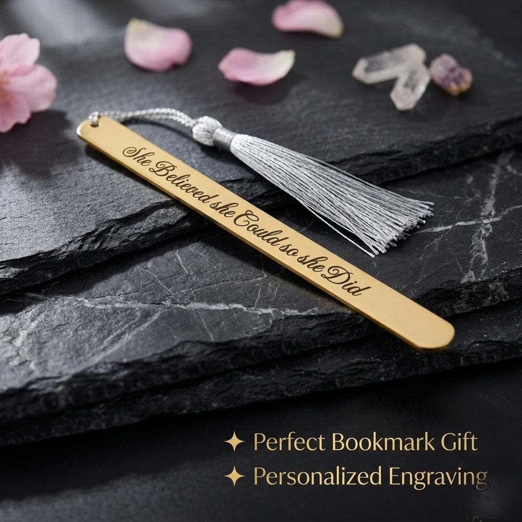 She Believed She Could So She Did | Bookmark | Metal Bookmark | Graduation Gift | Gift for Book Lover