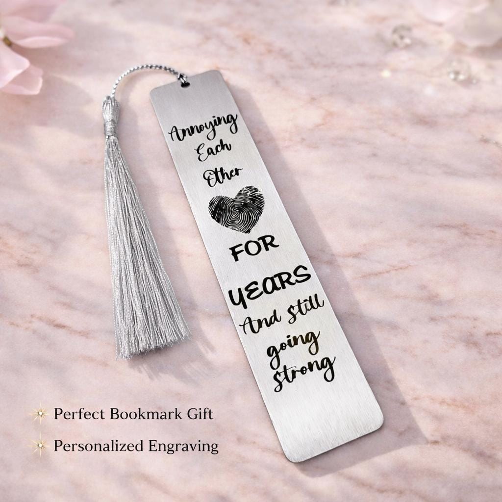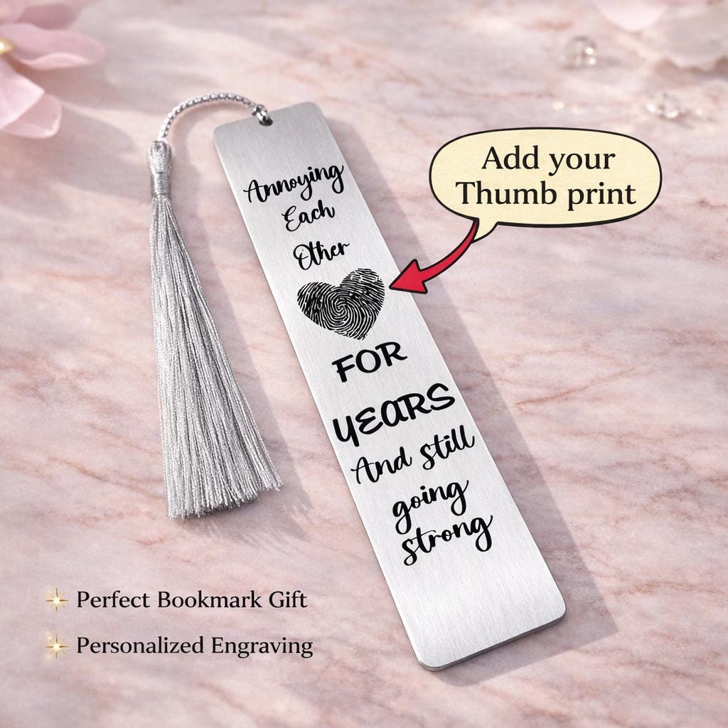 Unique Valentines Day Bookmark with Your Actual Fingerprint Personalized & engraved for Husband Wife Him Her Boyfriend Girlfriend Couples.