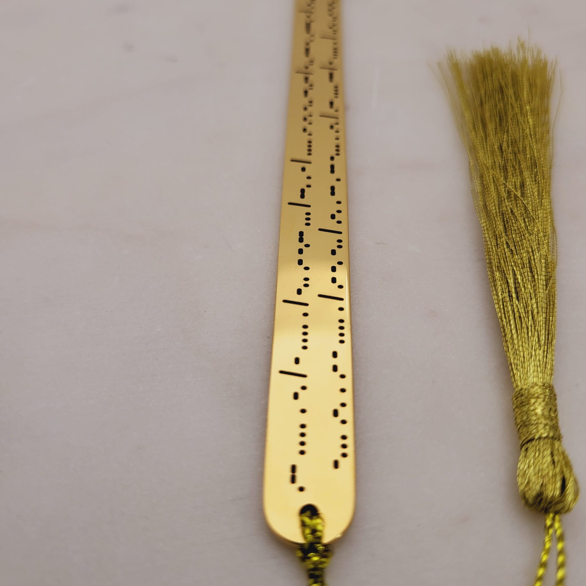 Note: We may split the morse code engraving on multiple lines to fit it on the Bookmark.