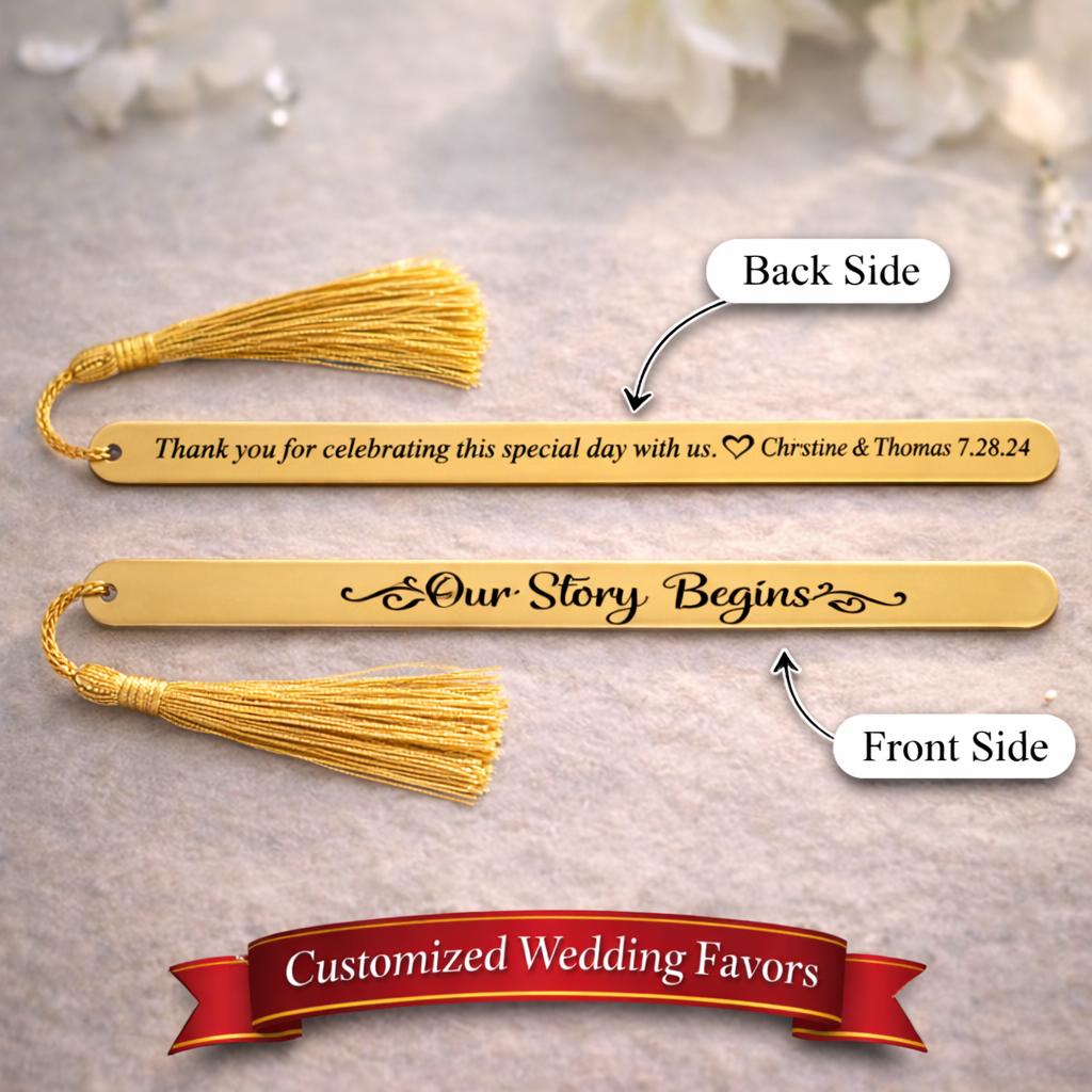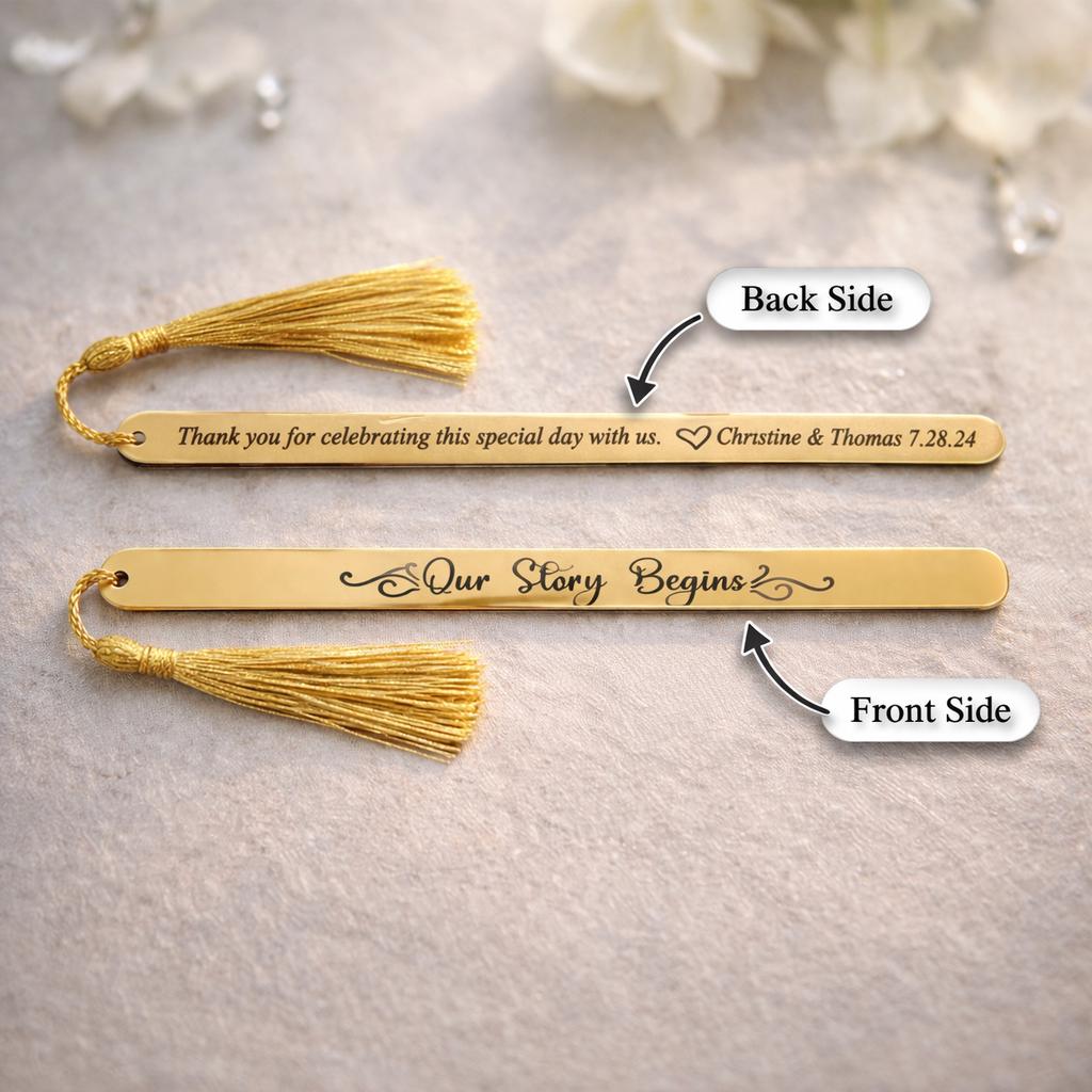 Personalized wedding favors for guests Bookmark. [Our Story Begins]