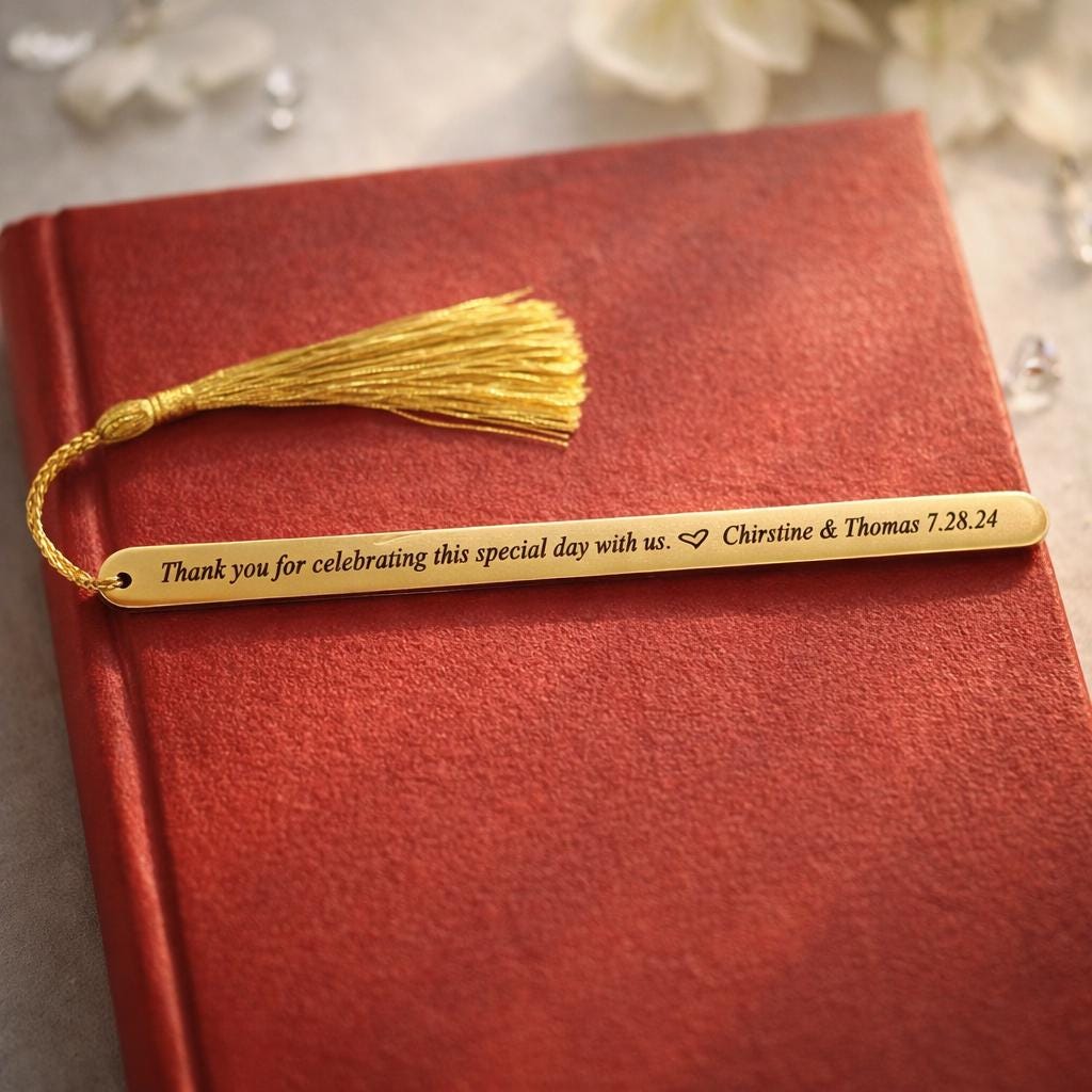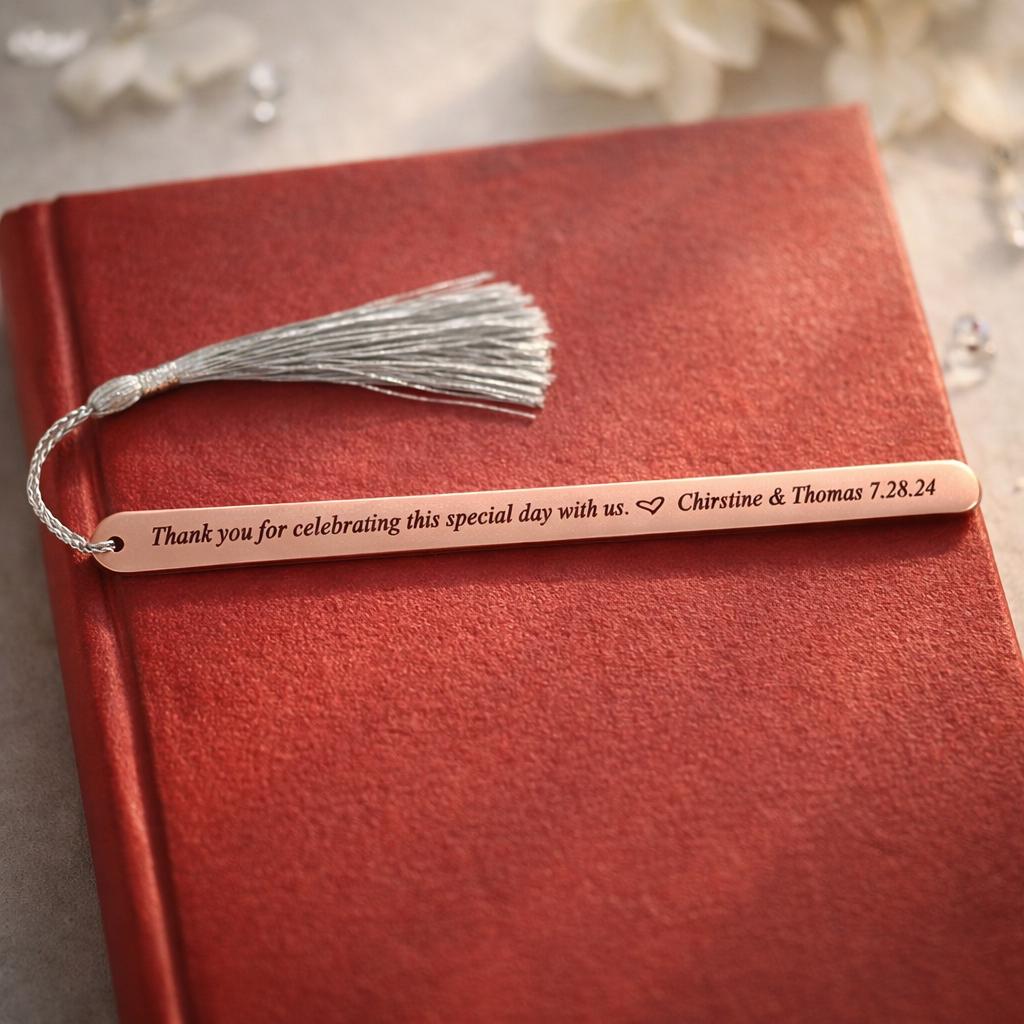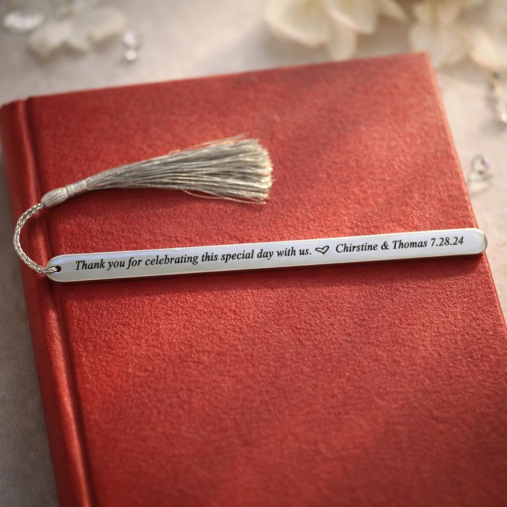 You can also choose to have the 2 Names and Date Engraved & customized on back of bookmark.