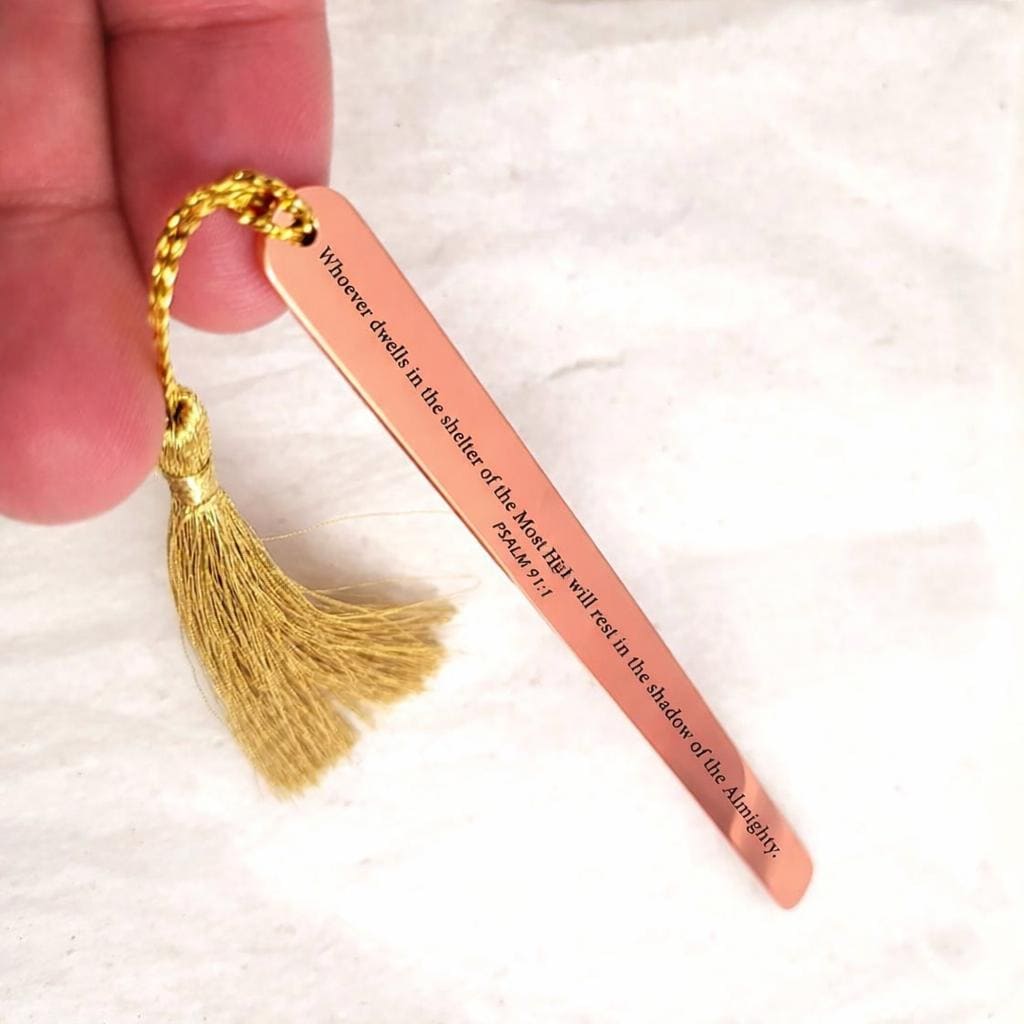 Psalm 91:1 Christian Bookmark, Engraved Stainless Steel Bible Verse Gifts